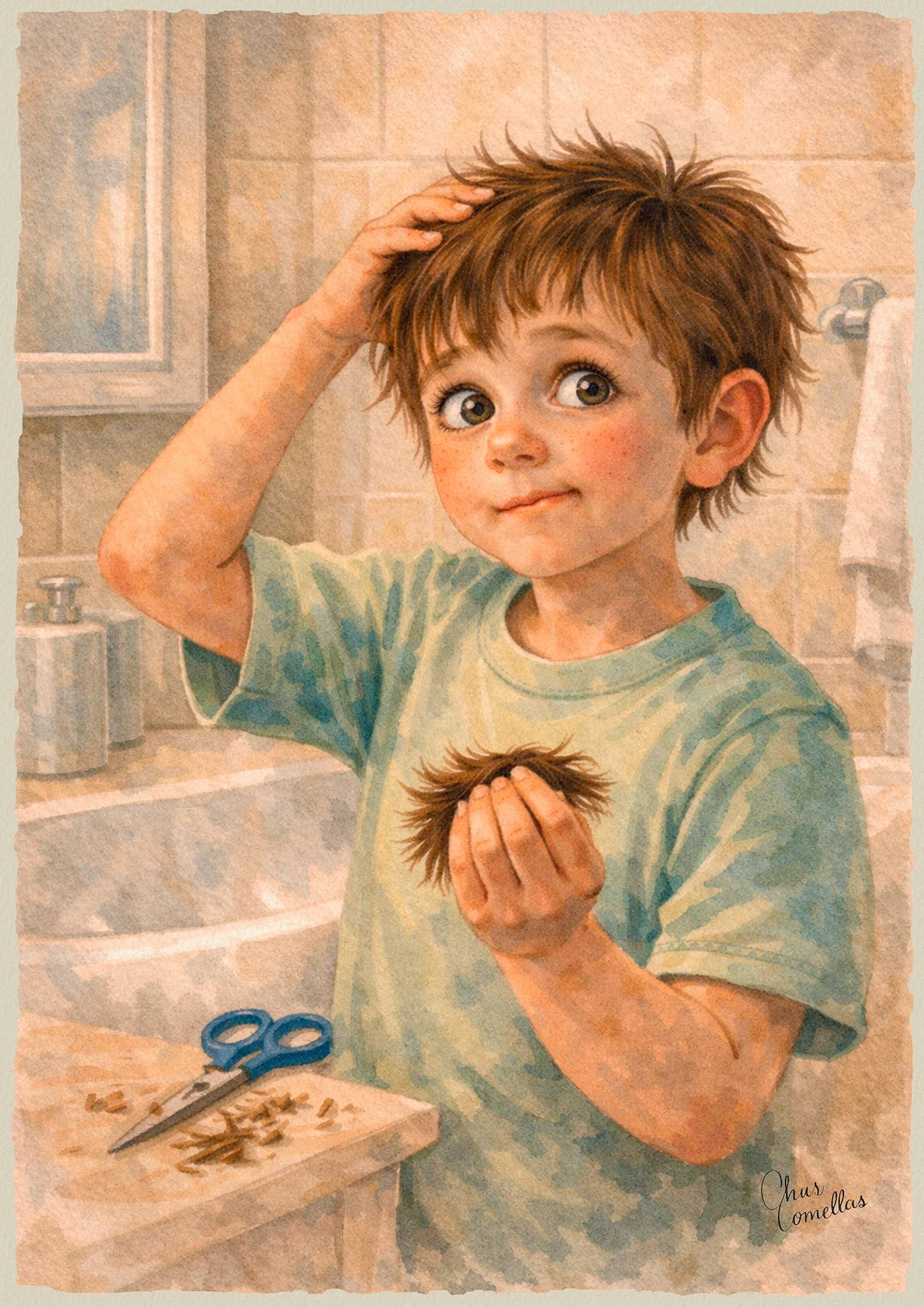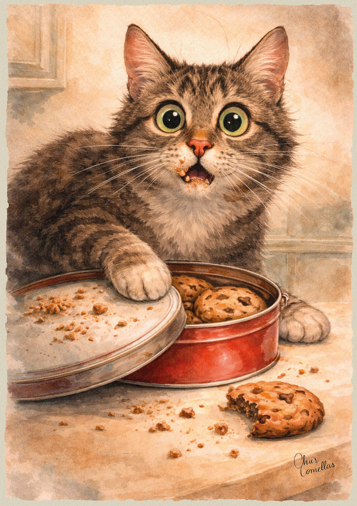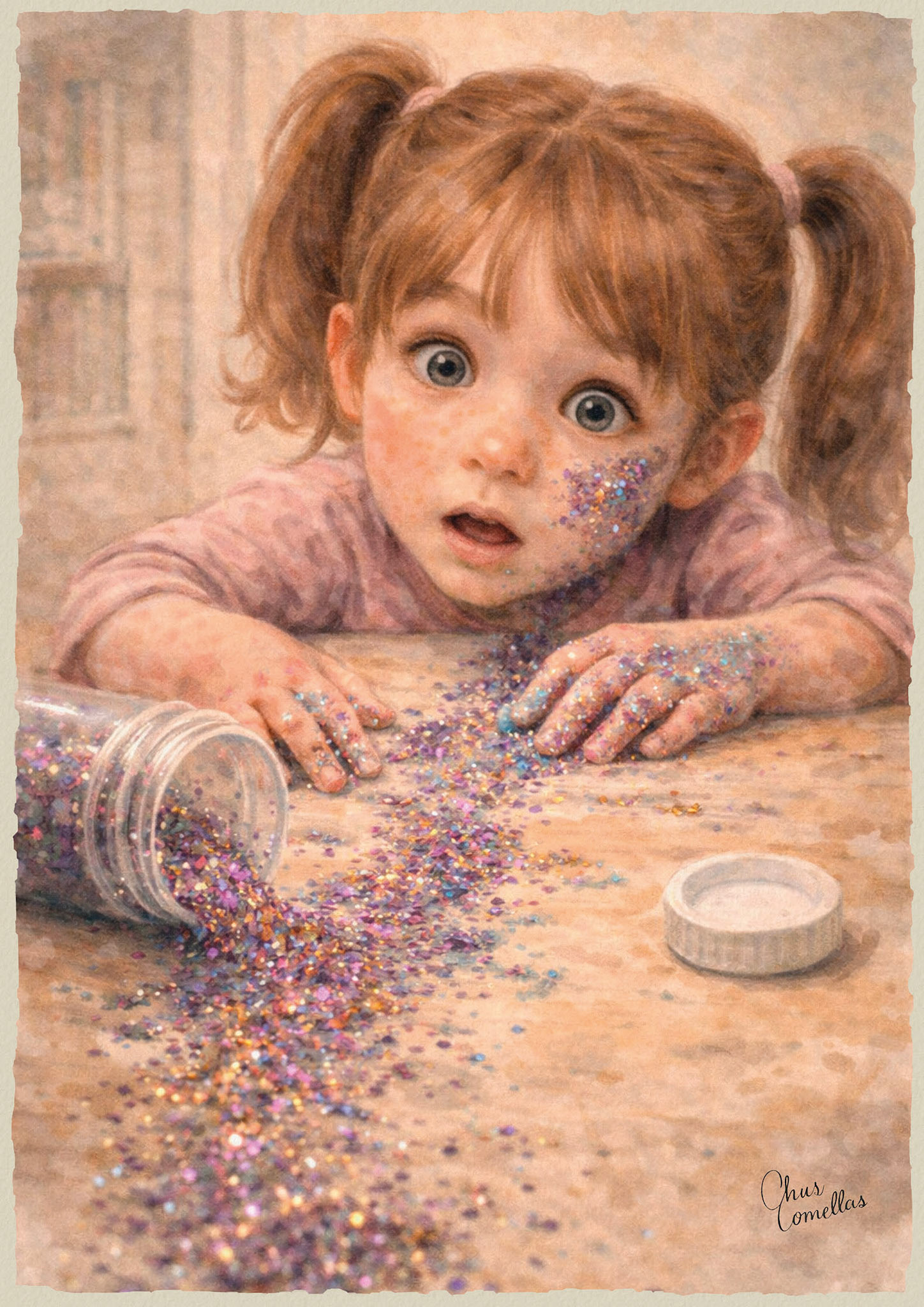 Pillados Infraganti reúne escenas domésticas capturadas justo a tiempo: esa décima de segundo en la que alguien (humano o animal) mira como diciendo “no he sido yo”… y ya es tarde. Son momentos de travesura y caos cotidiano —brillos por el suelo, pintura derramada, un calcetín desaparecido, un libro mordisqueado— narrados con humor y ternura. Pequeñas historias sin palabras donde la inocencia siempre intenta salvarse… pero la evidencia brilla.
