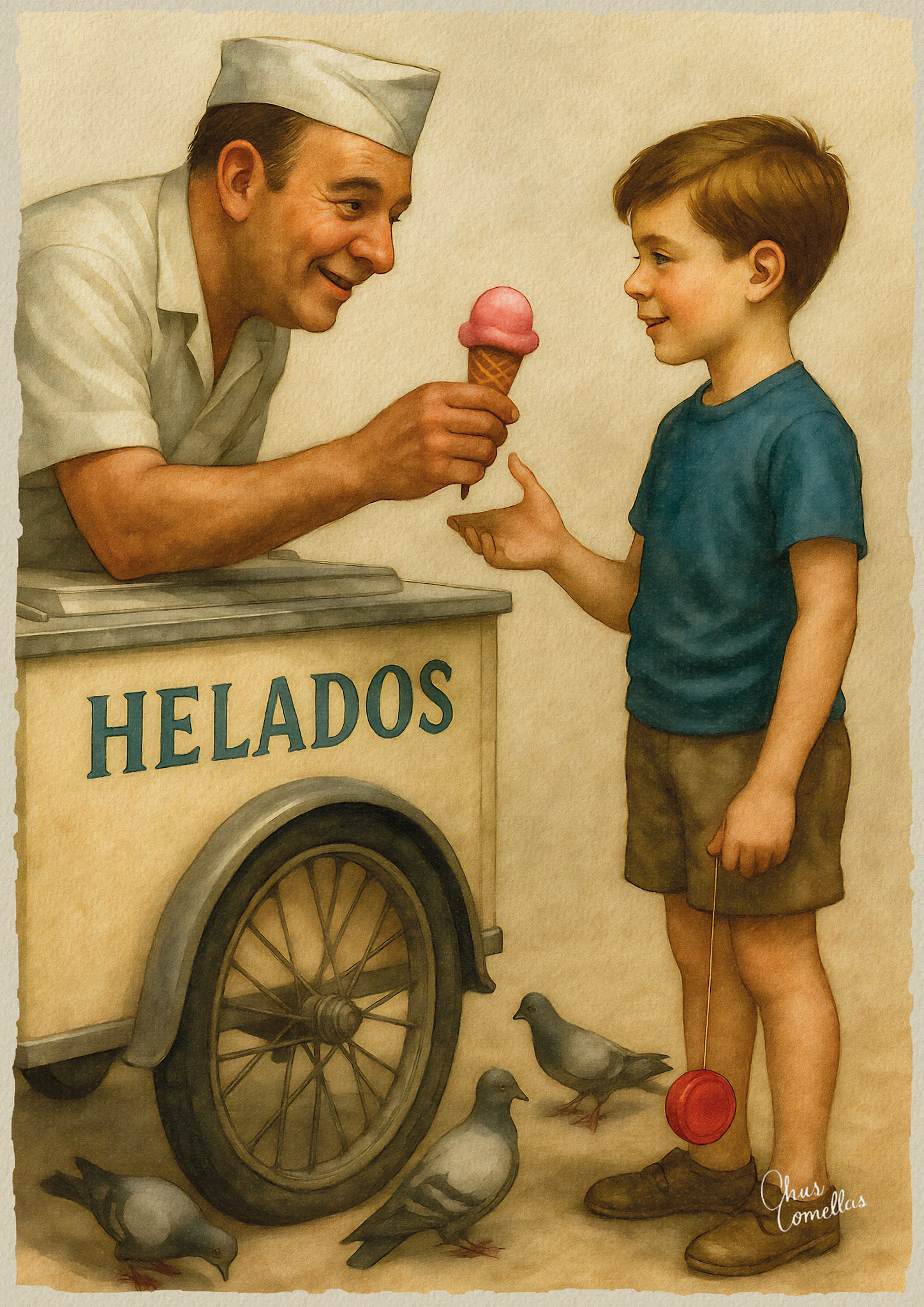 Vida cotidiana de los 60, pequeñas escenas que huelen a calle, a radio encendida y a verano interminable: oficios, juegos, cines de barrio, playas y cocinas donde todo se decía bajito. Una nostalgia luminosa, contada en gestos simples… de esos que se te quedan pegados para siempre.